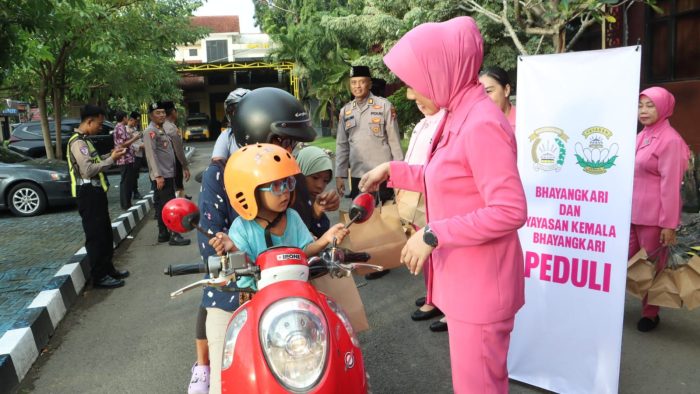 Aksi simpatik ini dipimpin langsung oleh Kapolres Bangkalan AKBP Wibowo, S.I.K., M.H. bersama ketua Bhayangkari Cabang Bangkalan Ny. Tiffany Wibowo, serta jajaran pejabat utama dan polwan Polres Bangkalan.