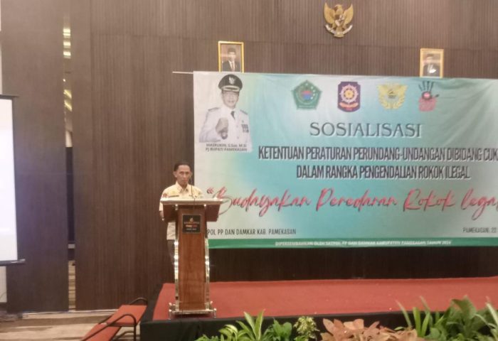 Pamekasan – www.koran Pelopor.id Satuan Polisi pamong praja menggelar Sosialisasi Forum Tatap Muka Ketentuan tentang cukai rokok DBHCHT yang di laksanakan pada hari Rabu pagi (22/05/24) di hotel bintang 4 Azana Style hotel jl.jokotole no.282 kecamatan Pademawu kabupaten Pamekasan Madura Jawa Timur.