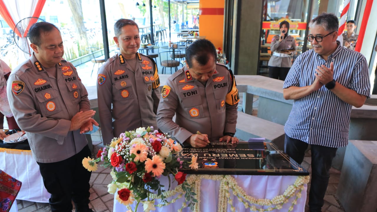 Keterangan Foto : Irjen Pol Toni Harmanto Resmikan Semeru Walk dan Air Mancur Kolam Semeru di Mapolda Jatim.