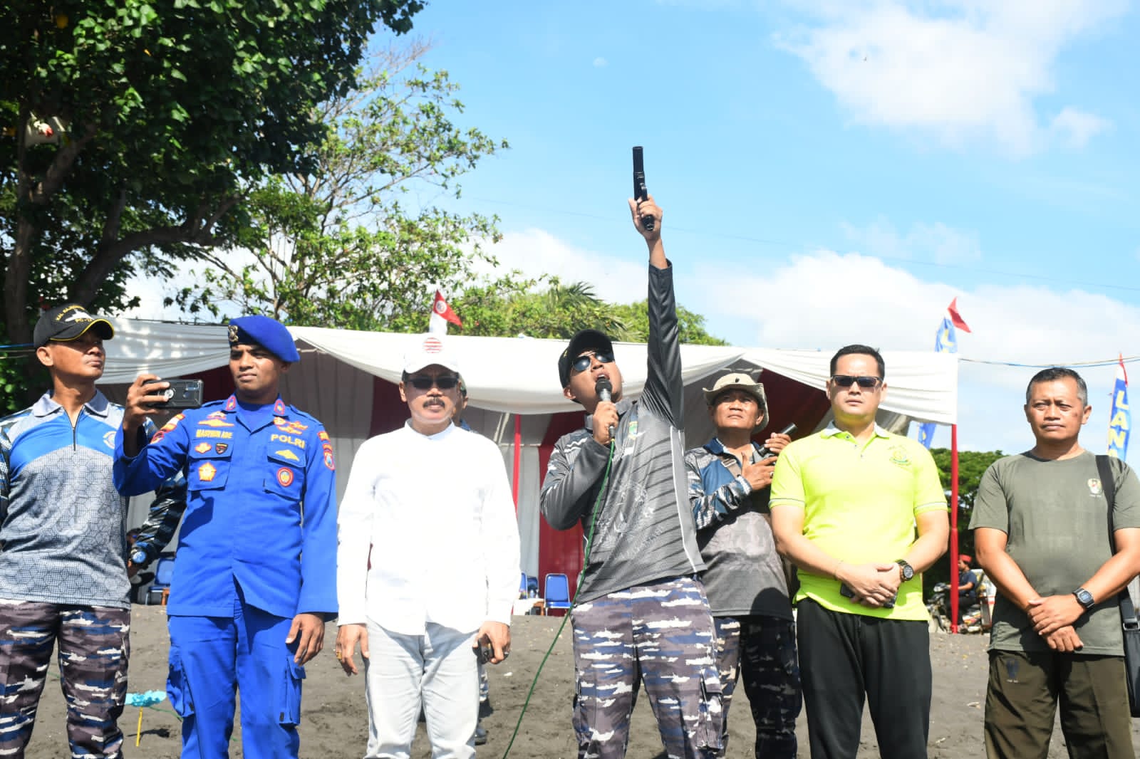 Acara Lomba Perahu Layar Tradisonal tersebut dibuka langsung oleh Danlanal Banyuwangi Letkol Laut (P) Indra Nusha R didampingi oleh Forkopimda Banyuwangi, yang ditandai dengan Penembakan Pistol Suar ke Udara.